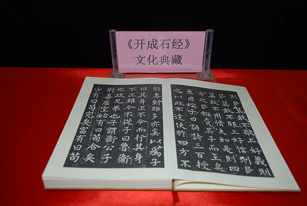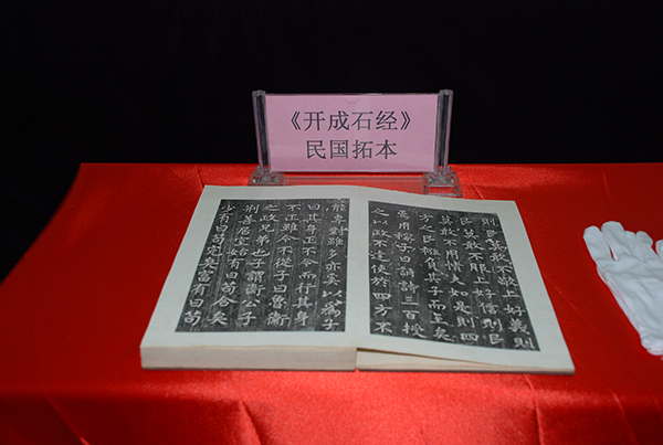 同时亮相的民国《开成石经》善拓系上世纪60年代原陕西省博物馆著名碑帖专家段绍嘉所捐献。民国善拓共250册,桐木夹板,5册一函凡50函。文化典藏书籍正是依此样式和材料精心复制而成。该馆馆藏《开成石经》清代拓本、民国拓本和当代典藏书籍同台亮相,完美阐释了中华文化复兴和传承喜逢盛世。据专家介绍,《开成石经》文化典藏具有历史、文化、学术、书法、版本学、印刷史、收藏等多元价值。开发《开成石经》文化典藏也是陕西文物系统贯彻落实习近平总书记“让文物活起来”系列讲话精神的重要举措。