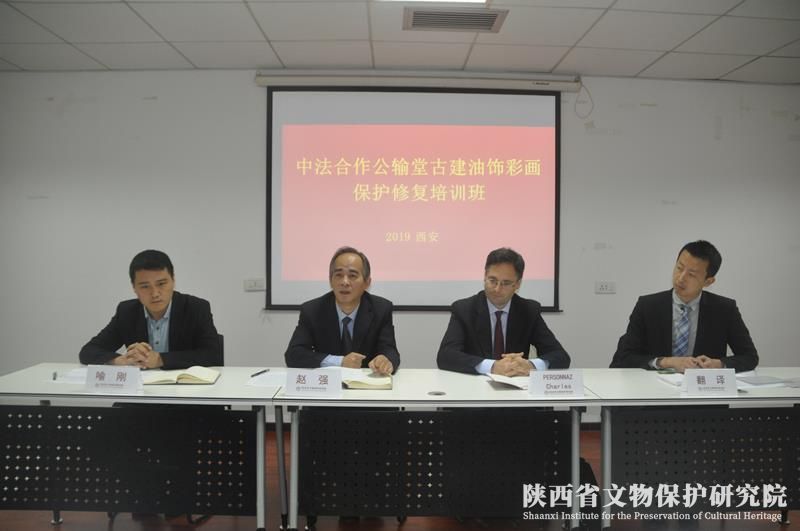 10月22日,由陕西省文物保护研究院与法国国家遗产学院共同举办的“中法合作公输堂古建油饰彩画保护修复培训班”正式开课。陕西省文物保护研究院院长赵强、法国国家遗产学院院长佩尔索纳-查尔斯先生出席开课仪式。省文保院院长助理喻刚主持仪式。