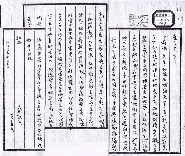 1922年3月,胡适出任新创立的北京大学《国学季刊》的主编。胡适对《国学季刊》非常重视,他在1923年1月《国学季刊》创刊号上发表了他撰写的《发刊宣言》,阐述其对国学研究的认识,影响颇大。而黄文弼亦曾帮助胡适编辑过《国学季刊》。黄文弼在1923年3月14日写信给胡适(耿云志主编《胡适遗稿及秘藏书信》第37册,4页),向其呈送了单不庵先生《跋补钞文澜阁书六种》、金梁《内阁大库档案访求记》两篇文章。他又在4月3日的信中(耿云志主编《胡适遗稿及秘藏书信》第37册,5页)向胡适呈送了容庚《甲骨文字之发现及其考释》一文。两封信中提到的论文,单不庵的文章发表于《国学季刊》第1卷第3期(1923年7月),容庚的文章发表于《国学季刊》第1卷第4期(1923年10月)。这三篇论文,应当便是投稿给《国学季刊》的稿件。第一封信中提到的“沈先生”,很可能就是当时任国学门主任、《国学季刊》编委的沈兼士。黄文弼当时虽然没有名列编辑之中,但还是参与组织抄写、收送《国学季刊》的投稿稿件,实际上是承担了一部分编辑的工作,给胡适提供了不少帮助。