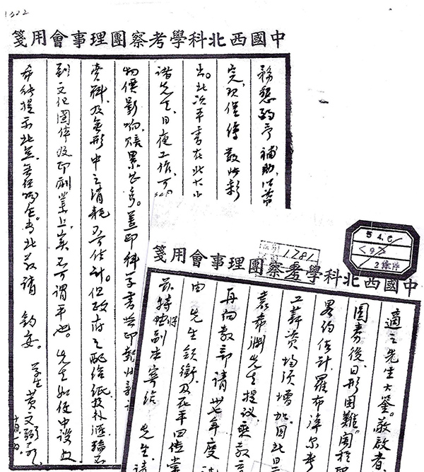 1937年2月28日,黄文弼在北平见到了胡适。胡适在当天的日记里记有“黄文弼等来谈”。很快,胡适在1937年3月2日与时任考察团常务理事的徐森玉见面。接下来胡适又邀集在北平的考察团理事会重要人物聚会,胡适在1937年3月6日的日记中写道:“与徐森玉先生同邀袁复礼、徐旭生、黄文弼、沈仲章、沈兼士吃饭,谈谈西北科学考察团的事务。”徐森玉、袁复礼、徐旭升、沈兼士皆是考察团常务理事,沈仲章为考察团干事。而作为北大文学院院长的胡适,此时俨然是考察团的主事者。据邢义田先生所见,台湾史语所藏傅斯年档案中有1940年袁复礼致傅斯年信函,明确注明胡适为西北科学考察团理事长(邢义田《傅斯年、胡适与居延汉简的运美及返台》,载《地不爱宝:汉代的简牍》,北京:中华书局,2011年,402页)。或许这里提到的1937年3月6日胡适召集诸位常务理事吃饭时,胡适可能就已经是考察团的理事长了。而这次吃饭的主要议题之一,显然就是想办法帮助黄文弼解决经费问题。就在这次吃饭前不久的3月1日,胡适曾向教育部长王雪艇写了一封长函,谈增加北大预算事,其中或许就包含资助考察团工作的款项。遗憾的是,因为抗战的到来,黄文弼被迫将文物分别转移至南京、武汉,整理工作也一度中断。
