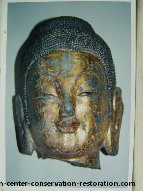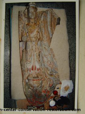 龙兴寺彩绘石刻的修复,时间紧、任务重,为配合外展工作要求,中心派员现场修复。在二十多天的时间内,共修复造像二十二件。从2002年8月完成修复工作后,文物已经参加了多个国家外展,经历三年多时间,得到了国家文物局、外展单位、国内外专家学者的认可和好评。