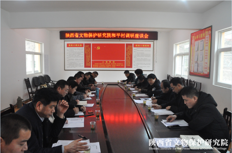 首先,慰问组一行在和平村召开现场座谈会。范桂强宣读了文保院2019年驻村工作队队员和第一书记任命决定,并对驻村工作队提出三点要求:一是提高政治站位,加强自身学习;二是积极宣传党的政策,努力增强扶贫自信;三是因地制宜、精准施策,确保全村贫困人口一个不落按期脱贫。其次,会上听取了和平村2018年扶贫工作总结汇报,并就2019年脱贫计划进行了深入讨论。最后,院长赵强对驻村工作队去年的工作给予充分的肯定,并对今年的扶贫工作提出以下三点要求:一是提高认识,高度重视;二是制定好工作目标,落实好主体责任;三是严格要求自己,严肃扶贫工作纪律。本次现场座谈会由副院长韩建武主持。