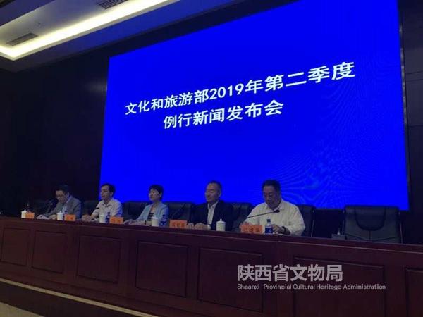 5月30日,2019年国家文化和自然遗产日活动新闻发布会在文化和旅游部进行,国家文物局政策法规司司长陆琼介绍文化遗产日文博活动安排、陕西省文物局副局长周魁英介绍陕西延安主场城市和其他分会场文博活动组织情况,并回答记者提问,新闻发布会由文化和旅游部办公厅副主任喻剑南主持。