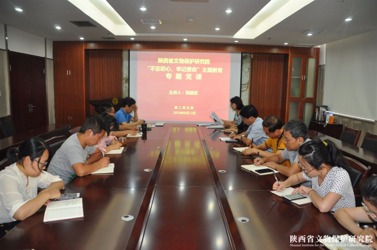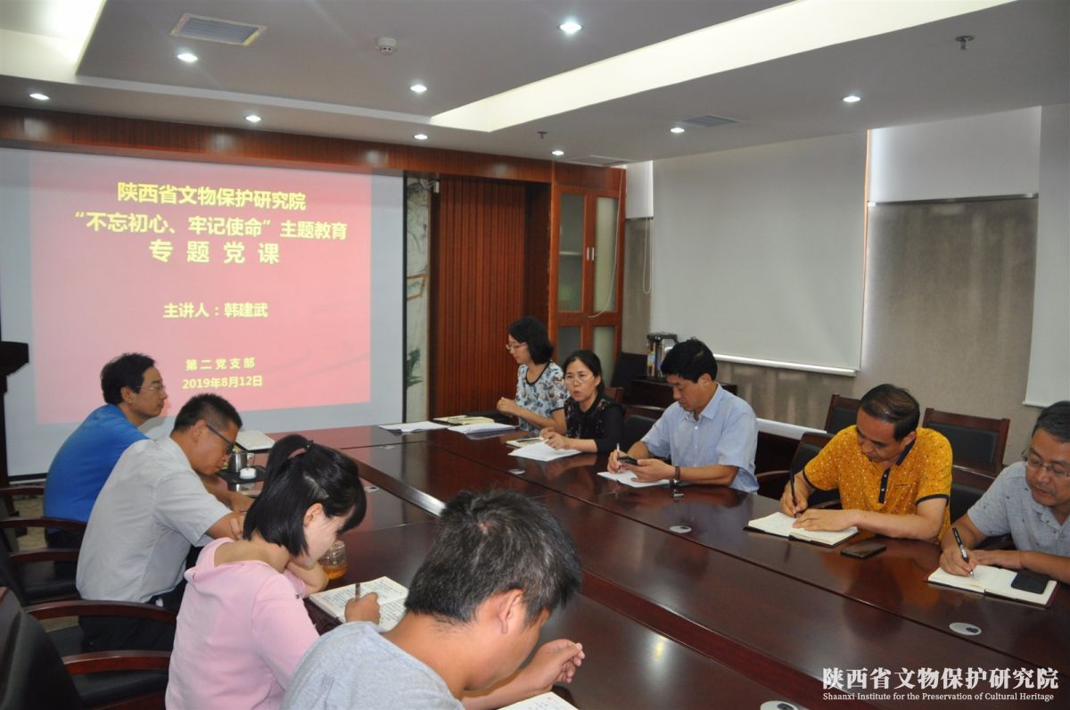 院党总支委员、副院长韩建武围绕“不忘初心、牢记使命”主题教育精神,以“初心和使命”为题目为第二党支部讲授专题党课。党课从“学习中理解”,“实践中检验”,“服务中实践”三个方面进行讲授,结合在延安、宝鸡、韩城等地区调研工作中发现的突出问题,分析影响文物保护利用的工作难点,积极探索解决问题的办法举措。