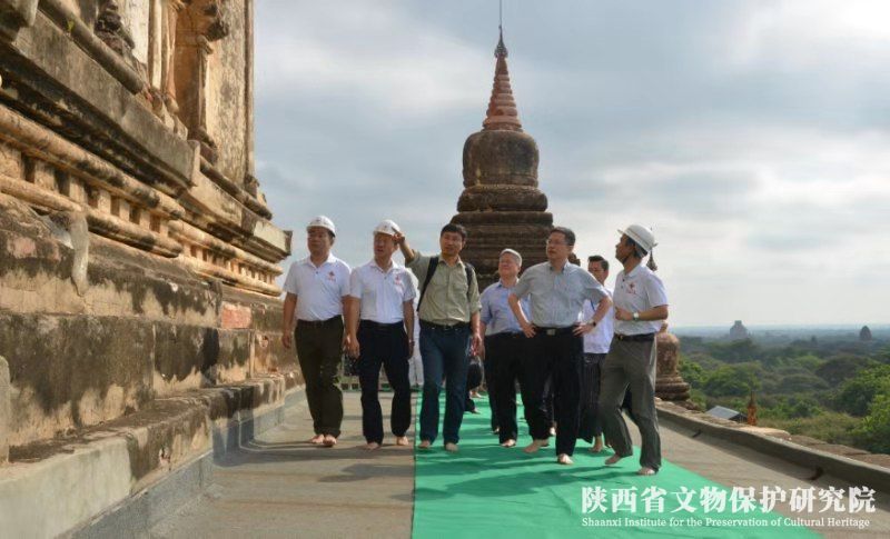 11月5日,在陕西省文物局局长罗文利的陪同下,陕西省人民政府副省长方光华率省政府代表团一行六人,赴缅甸蒲甘他冰瑜寺保护修复项目工作现场,视察项目进展情况,看望慰问项目组人员,并与缅甸联邦共和国宗教事务和文化部副部长吴季敏进行了会谈。
