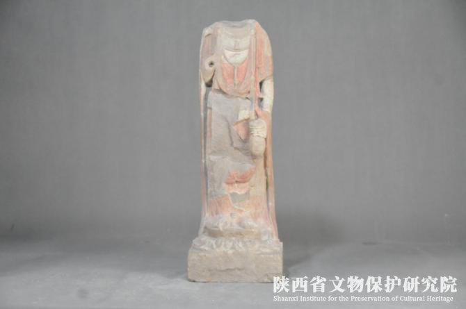 今年开工以来,截止目前为止,主要完成了以下工作。一是针对甘肃泾川县出土彩绘石质佛造像的保存状况、病害类型,制作工艺、保存环境等进行分析与研究;二是针对该批造像病害类型特征,实施主要包括表面清洗、脱盐、断裂粘接、补缺与全色,石材防风化加固、封护等工作,以期达到有效保护的目的。