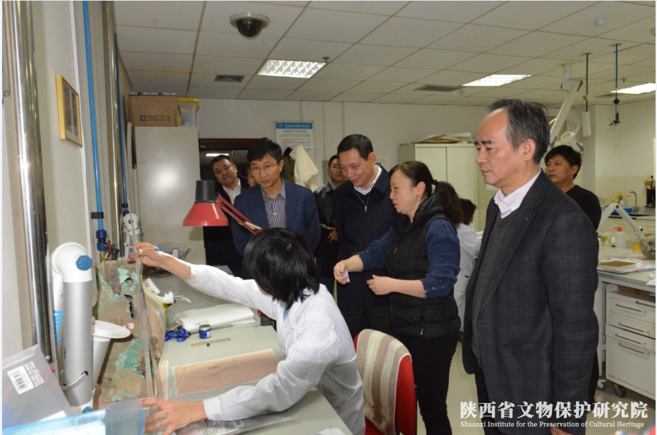 12月16日,在省文物局局长罗文利、副局长周魁英陪同下,省测绘地理信息局局长杨宏山、副局长王占宏一行来到文物科技大厦调研。省文物保护研究院、省文化遗产研究院、省文物保护工程有限公司三家单位负责人一并陪同并进行了讲解。