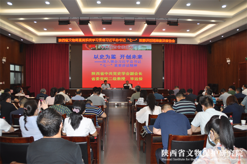 7月16日,陕西省文物保护研究院党总支书记范桂强带领党办负责人、党员代表及青年代表一行4人参加了由陕西省文物局主办的学习贯彻习近平总书记“七一”重要讲话精神宣讲报告会。