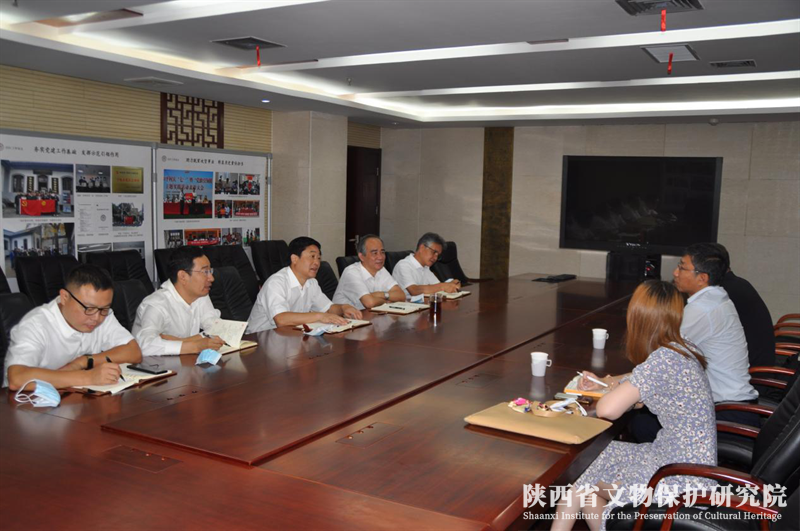 8月6日,省文物局党组书记、局长罗文利在博物馆与社会文物处(科技处)处长王金青、文物保护与考古处副处长王如冰的陪同下,对省文保院新冠疫情防控工作进行了检查,并就文物预防性保护工作进行了专题调研。省文保院全体领导班子成员参加了本次调研。