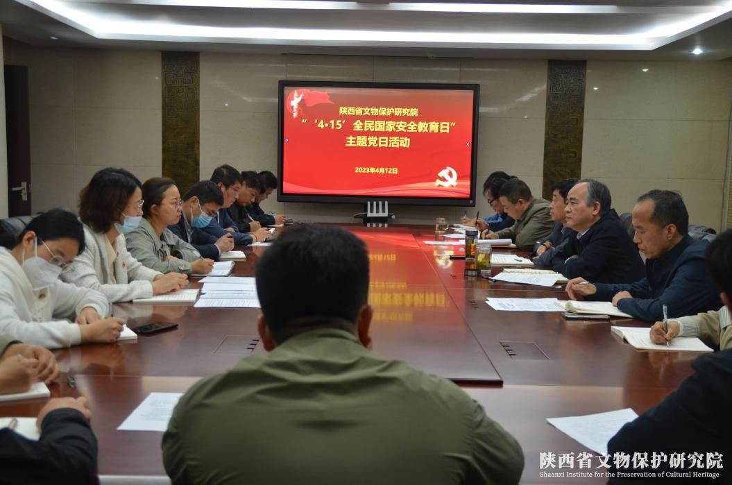 4月12日,省文物保护研究院开展“全民国家安全教育日”主题党日活动,院党总支书记范桂强以“筑牢安全底线,守护精神家园”为题讲授专题党课,院长赵强、全体中层以上领导干部和党支部书记、支部委员等参加。