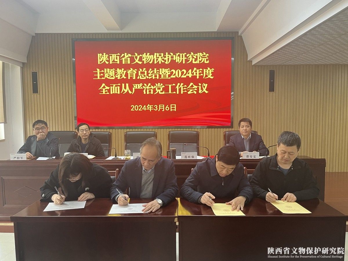 会上,副院长韩建武传达省文物局直属系统主题教育总结暨2024年度全面从严治党工作会议精神,副院长邵安定传达省委组织部部长会议、省委统战部部长会议、省文物局纪检工作会议相关精神,总工程师严绍军宣读《陕西省文物保护研究院关于表彰2023年度先进科室和个人的决定》。会上还签订了2024年度目标责任书。