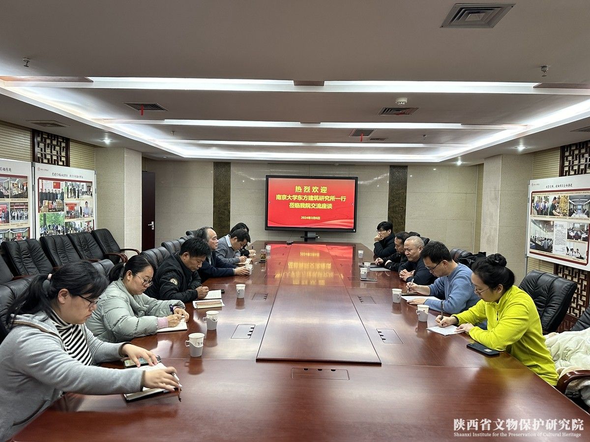 3月6日,南京大学东方建筑研究所所长周学鹰一行6人来陕西省文物保护研究院考察交流并座谈,省文保院院长赵强、副院长邵安定及各部门业务骨干参加。