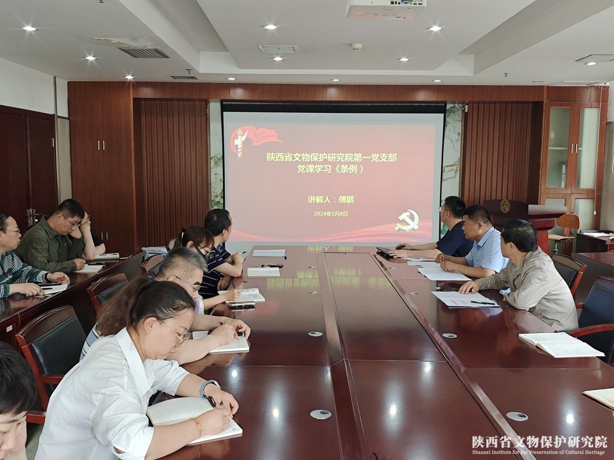 5月8日,陕西省文物保护研究院第一党支部召开全体党员大会,推选新一届院党总支委员候选人预备人选、共同学习新版《中国共产党纪律处分条例》。会议由支部书记傅鹏主持,院党总支书记范桂强出席会议。