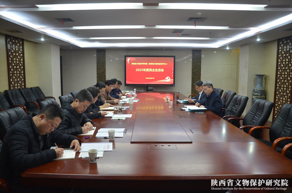 2月27日,陕西省文物保护研究院(陕西省文物鉴定研究中心)召开2025年民主生活会,省文物局二级巡视员朱新文,省文物局直属机关党委专职副书记谭家礼到会指导,院党总支书记范桂强主持,全体领导班子成员参会,党务与监察室、行政办公室、人事老干科等负责同志列席。