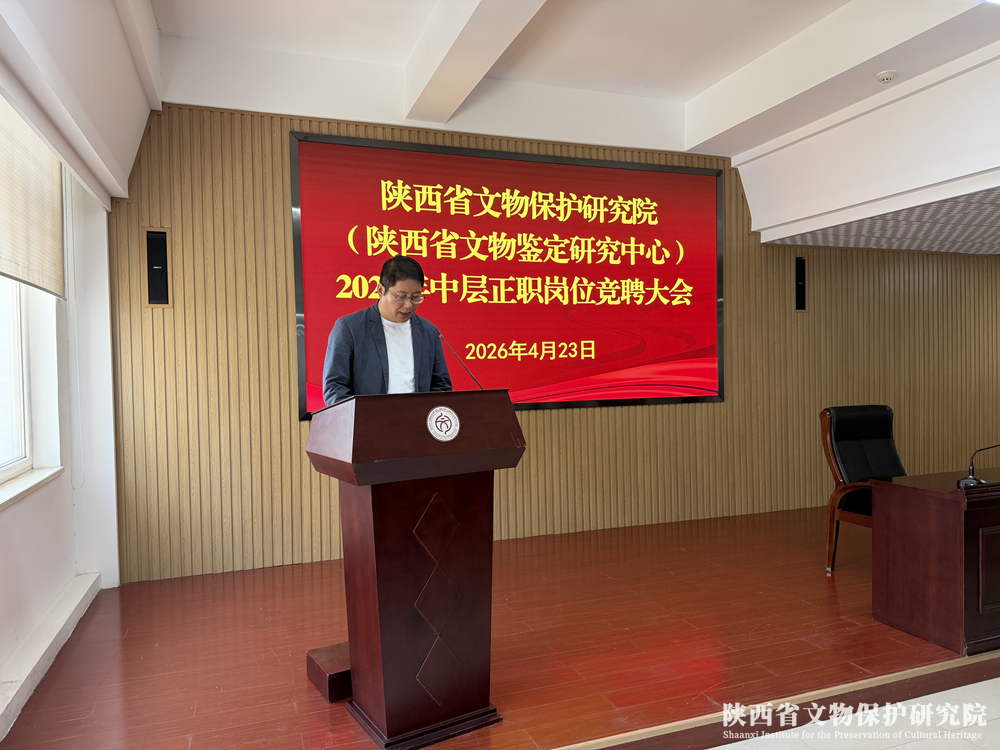 4月23日,陕西省文物保护研究院(陕西省文物鉴定研究中心)召开2026年中层正职岗位竞聘大会,会议由党总支书记范桂强主持,全体干部职工参加。